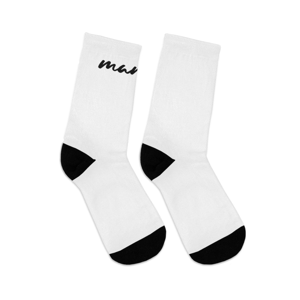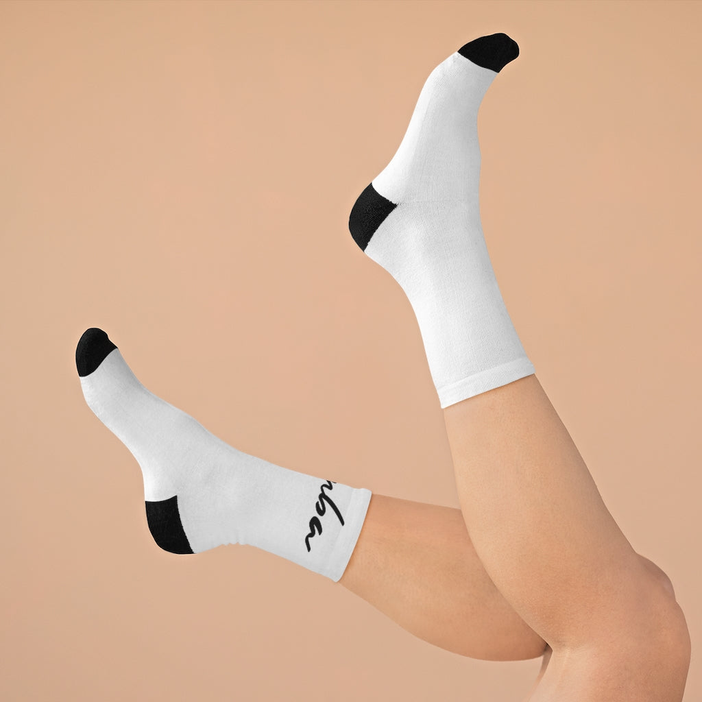 Tribe DTG socks are made using a proprietary blend of yarns specially sourced by Tribe Socks. They are 200 needle knit crew with half terry cushioned button for extra support and comfort. They are a true one size fits most, and are available up to size 12 male (U.S.). They have an unprecedented amount of stretch with durable print quality.
